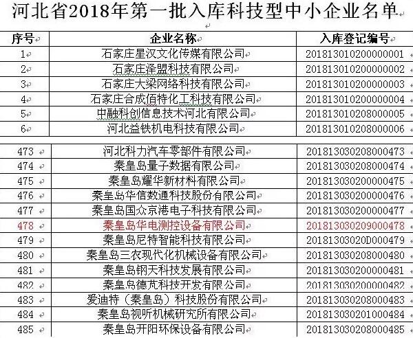 近日獲悉,秦皇島華電測(cè)控設(shè)備有限公司被納入河北省2018年第一批 “國(guó)家科技型中小企業(yè)信息庫”企業(yè)。根據(jù)《科技型中小企業(yè)評(píng)價(jià)辦法》(國(guó)科發(fā)政〔2017〕115號(hào))和《科技型中小企業(yè)評(píng)價(jià)工作指引(試行)》(國(guó)科火字〔2017〕144號(hào))要求,我公司通過公示,正式納入,入庫登記編號(hào)為 201813030209000478。