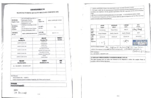 6月12日,華電測控供菲律賓GNPower Dinginin2×660MW燃煤電廠1號(hào)機(jī)組7套煤倉疏松機(jī)設(shè)備出廠發(fā)貨。設(shè)備出廠前經(jīng)過上海電建委托方法國BV、上海電建監(jiān)造部、業(yè)主委托方美國BLACK & VEATCH進(jìn)行出廠檢驗(yàn),驗(yàn)收合格予以出廠。